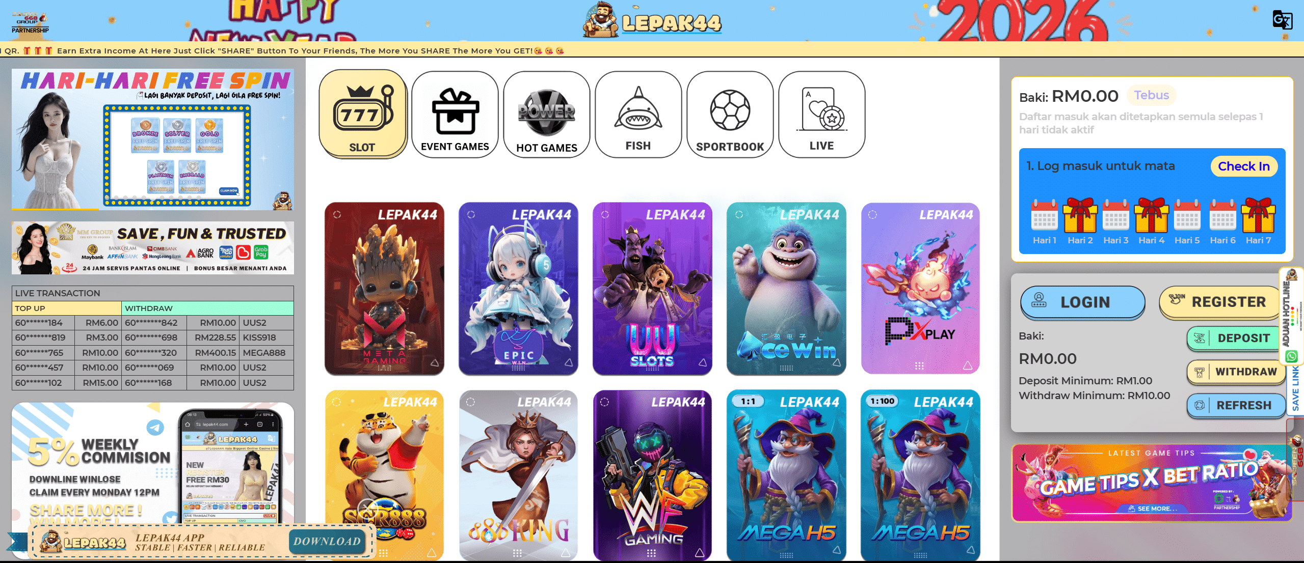 This review takes a closer look at what Lepak44 offers, including its game selection, free credit promotions, payment options, and overall user experience, with a special focus on Free Credit 365 and eWallet free credit bonuses that appeal strongly to Malaysian players.